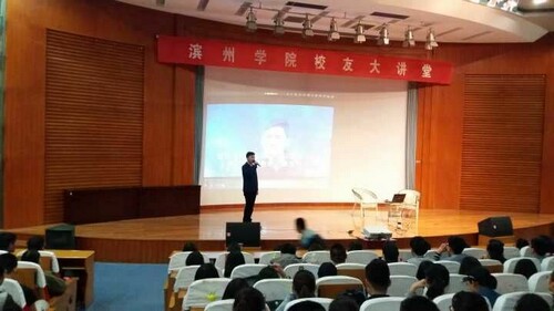 1664月27日,滨州学院邀请2003级优秀校友陈岩在五百人礼堂做了精彩演讲,太阳成集团tyc151cc部分学员参加了本次活动。