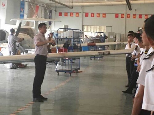 上午8点半,首先到山东滨奥飞机制造有限公司,了解到公司生产管理和发展历史。随后,工作人员带领大家参观了飞机制造车间,向同学们介绍了B-7949、B-9157和DA40等小型飞机制造的基本流程及飞机修理中的注意事项,并安排工人为同学们演示了飞机基本零配件的组装。然后,实习组到来到大高通用机场,观摩了B-7949飞机的起飞与降落,通过飞行员的介绍,得知飞机起飞和降落过程中的关键步骤与注意事项。