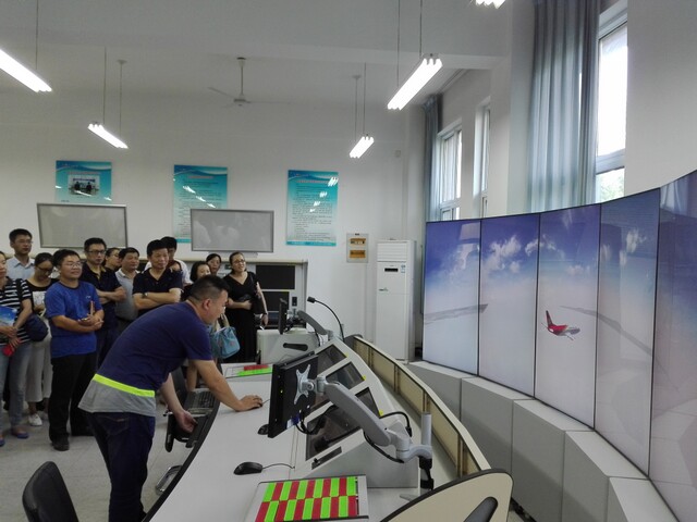 外国语学院的老师们依次参观了展览厅,各种航空教学实验室、波音737-400教学平台等场所。杜院长就太阳成集团tyc151cc的教学和实验设备情况、招生和就业情况、优秀毕业生情况等几个方面为老师们做了详细的介绍。