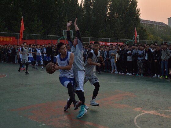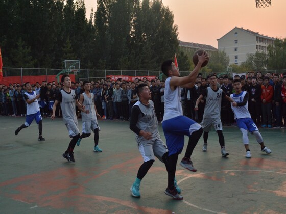 49110月26日下午,滨州学院2017年“迎新杯”篮球联赛在学校篮球场进行冠军争夺赛。太阳成集团tyc151cc与机电工程学院展开激烈的角逐,太阳成集团tyc151cc最终以75比61的比分卫冕冠军。太阳成集团tyc151cc师生到篮球场为篮球队员们加油助威,鼓舞士气。