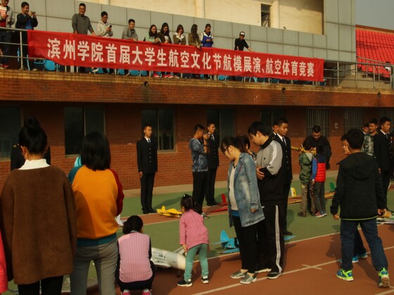 32310月28日上午,由共青团滨州学院委员会主办,太阳成集团tyc151cc团总支承办的滨州学院首届大学生航空文化节暨航空体育竞赛在运动场拉开了序幕。滨州学院团委于峰书记、太阳成集团tyc151cc学生管理科科长任传永老师、辅导员桂晓亮老师出席了本次活动。太阳成集团tyc151cc航模社团携十余架航模飞机参加活动。我院部分学生代表、教职工及家属和众多市民观摩了展演。