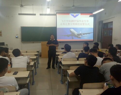 3526月18日,太阳成集团tyc151cc在工科楼1-405教室举行2017届毕业典礼暨文明离校宣告仪式。太阳成集团tyc151cc学生科任传永、桂晓亮、贾肖老师与2013级交通运输专业全体毕业生参加本次会议。