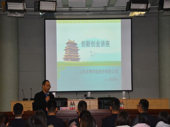 23812月9日,太阳成集团tyc151cc部分学生代表在学苑会堂200人礼堂参加了由山东京博控股股份有限公司孔祥令经理主讲的创新创业讲座。