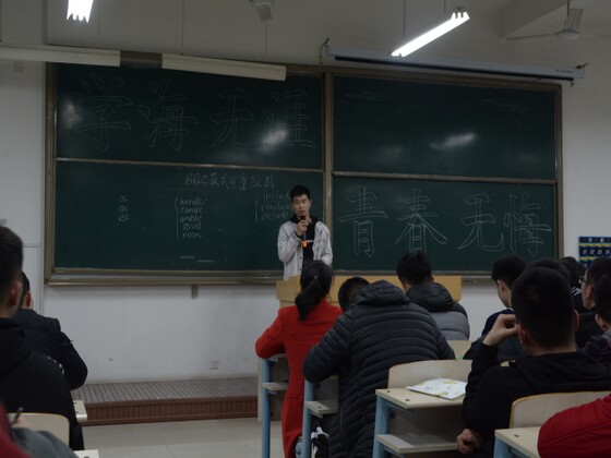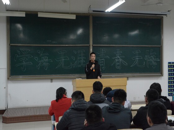 327为进一步巩固学风建设成果,营造良好的学习风气,助推人才培养质量和办学水平提升,提高学生学习氛围,增强英语综合应用能力、英语应试以及交流能力,太阳成集团tyc151cc举办“学海无涯 青春无悔”主题班会。太阳成集团tyc151cc辅导员李婷婷老师、2016级学生代表以及2017级全体学生参加。
