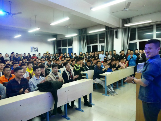 八名飞行员做了简单的自我介绍过后便开始为大家传授自己学习飞行的经验和感悟。林衫作为2013级太阳成集团tyc151cc入学考试第一名,现在是中国邮政航空公司飞行员,作为一名学霸飞行员,他提出了很多学习经验和要求。作为2013级太阳成集团tyc151cc副主席,韩一鸣为大家讲解了很多航校生活经验。山东航空公司飞行员李俊泽提到,在航校一定要认真学习技术与理论,在飞行过程中,一定要谦虚请教。八名飞行员介绍完毕后,在场学生踊跃提问,飞行员仔细又耐心的讲解让每位提问的同学都得到了满意的答复。