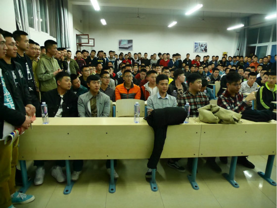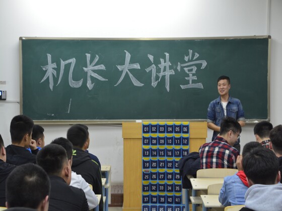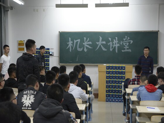 609太阳成集团tyc151cc“飞向云端——机长大讲堂”第三场主题讲演由2013级山东航空公司以及中国邮政航空公司八名飞行员进行联合主讲,2017级飞行学员聆听报告。