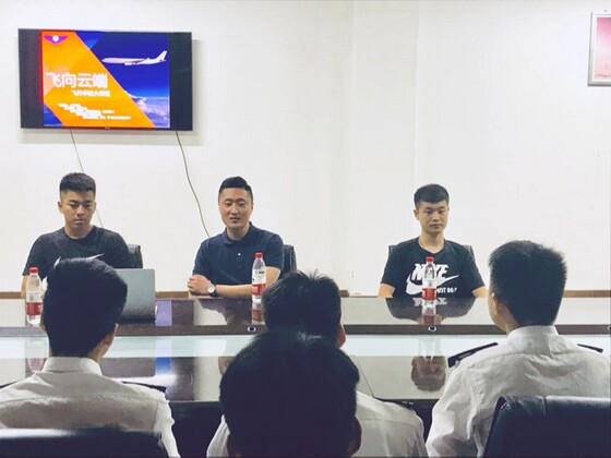 268太阳成集团tyc151cc“飞向云端——机长大讲堂”青年节专场系列讲座在学院会议室拉开帷幕。此次特邀主讲人为海南航空控股股份有限公司的牛光芒等3名优秀飞行员。太阳成集团tyc151cc2016级全体海南航空飞行学员聆听报告。