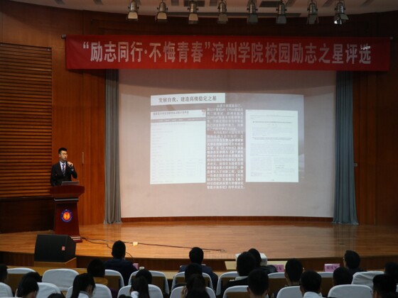 2802018年12月15日晚,我校在学苑会堂第二报告厅举办“励志同行 不悔青春”滨州学院校园励志之星评选大会,共有来自二级学院的21名选手参评,各二级学院学生代表观看比赛。