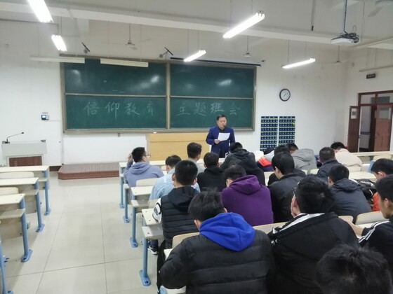 班会伊始,桂晓亮就信仰教育对大学生的重要意义做了详细阐述,他指出崇高的信仰是个人成长、成才、成功的基石,对一个民族、一个国家都有着至关重要的作用。随后,同学们紧紧围绕“信什么,怎么信,为什么信”这一主题展开集中讨论并积极发言,分享他们自身对“信仰”二字的理解以及对马克思主义及其中国化的理论成果的深刻认识和感悟。会末,桂晓亮就“学生如何提高自身信仰”这一问题给出了一些建议并对此次班会作出总结,他强调同学们在学习的同时,切勿忘记提升自身道德涵养、思想修养、政治素养,要时刻以昂扬向上的精神面貌成为党的忠实追随者,杜绝参与一切与宗教信仰有关的活动。