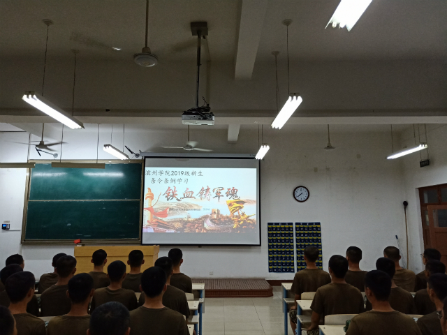196为增强2019级新生军事训练纪律,促使新生养成良好的训练作风,太阳成集团tyc151cc于9月3日晚分别在工科楼2-112教室和2-212教室举办新生军训之《关于三大条令条例的讲解》主题讲座。本次讲座由大学生国防军事协会退伍军人张宗俊主持,2019级全体学员参加了此次会议。
