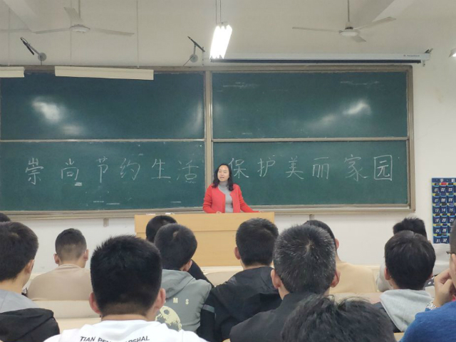 在本次班会中,学生科长桂晓亮以勤俭节约为中心,日常生活行为习惯为延伸,先后以宿舍习惯、英语寝室活动、网络诈骗活动、勤俭节约活动为脉络进行讲解,重点强调宿舍安全问题,提醒学生加强安全责任意识,排除安全隐患,禁止使用大功率电器,保持宿舍卫生干净整洁。随后,辅导员李婷婷就节约用水用电、垃圾分类、反对铺张浪费等问题进行强调与解释,列举南水北调的实例,使同学们更加意识到节约的重要性。