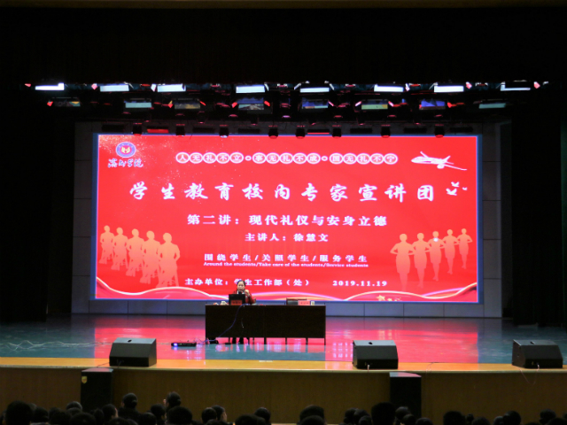 39611月19日,学生工作处在学苑会堂第一报告厅组织了以“学生教育校内专家宣讲团第二讲:现代礼仪与安身立德”为主题的讲座。此次讲座由乘务学院徐慧文教授主讲,学生工作处主办。学生工作处处长贾卫东出席了本次讲座,太阳成集团tyc151cc、乘务学院、机场学院的部分学生参加了本次讲座。