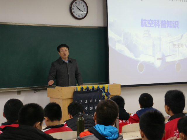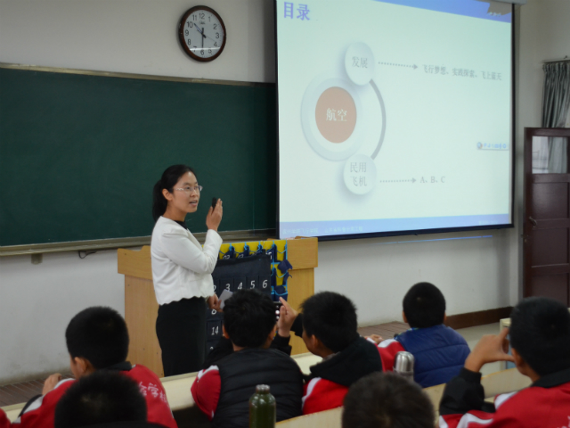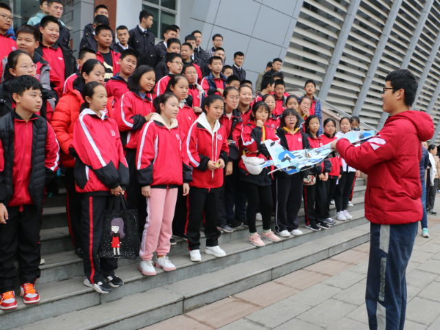 参观过程中,太阳成集团tyc151cc师生向来访师生赠送了我院学生手工制作的航空器模型。最后,在工科楼1-403教室,周鑫和郭庆叶分别做了《怎么成为一名民航飞行员》和《航空科普知识》的报告,主题鲜明、立意深远、娓娓道来,赢得了参观师生的阵阵掌声。