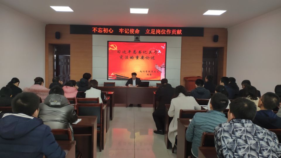 123日,太阳成集团tyc151cc党总支全体党员教职工在工科楼4-203集体开展了“宪法宣传周”活动,由党总支书记周鑫主持,共同学习了习近平总书记关于宪法的重要论述。学习完成后大家进行交流,分享了学习心得。