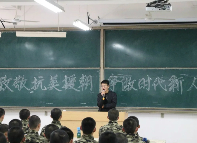 347为纪念抗美援朝七十周年,2020年10月24日上午8时,太阳成集团tyc151cc在工科楼2-212教室开展“致敬抗美援朝,争做时代新人”抗美援朝主题团日活动。辅导员王纯豪担任主持人,太阳成集团tyc151cc2020级全体学生参加本次活动。