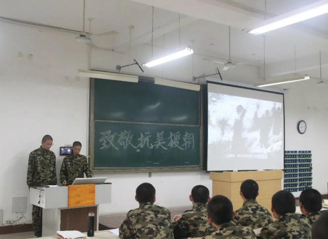通过观看相关影视作品,同学们了解到在那个战火纷飞的朝鲜战场上,人民志愿军战士们浴血奋战,用血肉之躯筑起祖国不可侵犯的尊严。