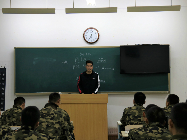 活动伊始,常洪青结合自身经历向大家详细地介绍了自己在国外学飞的经历。他提到,进入航校前,要提前了解航校的学习和生活环境,做好充分准备,调整好自己的状态,进入航校后,要尽快适应学飞的生活;在航校的学习生活中一定要做到互帮互助,务必时刻注意自己的言谈举止,学会与教员和谐相处,学会和每一位学员和睦相处。他强调,在航校学习生活中,英语口语至关重要,要勇于开口交流,提高自己的口语能力。活动最后,常洪青根据自身经验就每一位同学的疑惑一一耐心解答,拉近了与同学们的距离。同学们报以热烈的掌声,活动顺利结束。