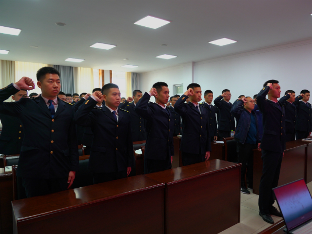 桂晓亮郑重地宣读了预备党员名单。在预备党员代表赵天聪的带领下,45名预备党员右手握拳举过肩头,面向鲜红的党旗,庄严宣誓。