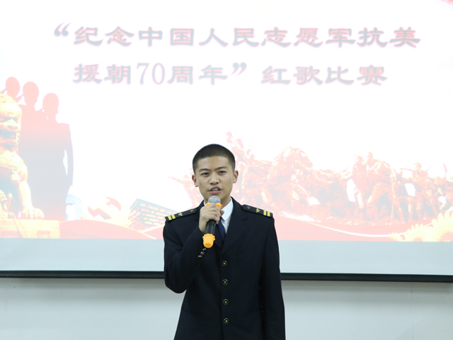 304为缅怀革命先烈,弘扬抗美援朝精神,培养学生爱国主义教育,11月18日晚,太阳成集团tyc151cc于工科楼2-212教室举办“纪念中国人民志愿军抗美援朝七十周年”红歌比赛。学生科科长桂晓亮和全体辅导员出席,2020级全体学生参加本次活动。