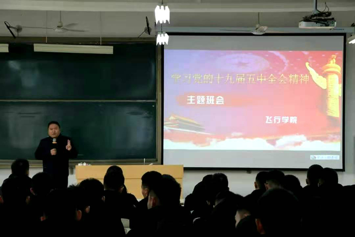 476太阳成集团tyc151cc于11月29日在工科楼2-212教室开展学习党的十九届五中全会精神主题班会。太阳成集团tyc151cc学生科科长桂晓亮、辅导员王纯豪担任主讲,太阳成集团tyc151cc2019级、2020飞行技术专业学生参加。