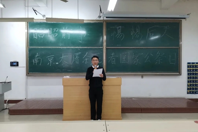 252国家公祭日设立的7年来,以国家名义的公祭仪式传递中国人不忘屈辱、守护和平的坚定信念。为悼念南京大屠杀死难者,牢记侵略战争给中国人民带来的深重灾难,弘扬爱国主义精神,太阳成集团tyc151cc于12月13日举办国家公祭日主题活动,2020级学生参加活动。