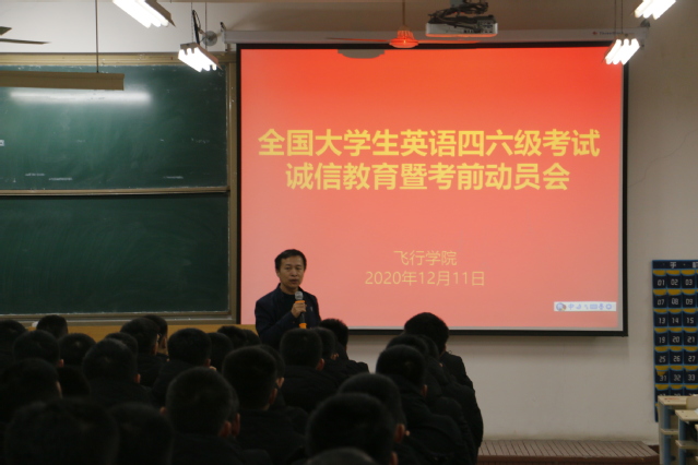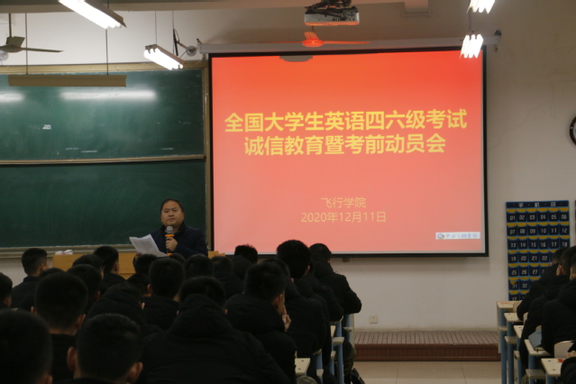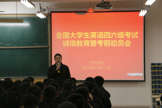 43912月11日晚,太阳成集团tyc151cc在工科楼2-212教室举行全国大学生英语四六级考试诚信教育暨考前动员会。太阳成集团tyc151cc党总支副书记李帅、副院长马文来、学生科科长桂晓亮、辅导员庞朝阳参加会议,太阳成集团tyc151cc19级参加此次英语四六级考试的全体同学参加会议。