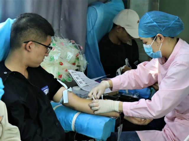 上午,太阳成集团tyc151cc献血学生来到二餐广场,在志愿者们的指导下,有序排队、填表,学习《献血法》及与献血有关的专业知识。太阳成集团tyc151cc学生在志愿者引导下,依次走上采血车内进行身体检查、献血,奉献爱心。无偿献血是无私奉献挽救生命的高尚行为,太阳成集团tyc151cc学子作为新时代青年人,奋起担当,献出自己爱心和热血,用实际行动奉献于整个社会。