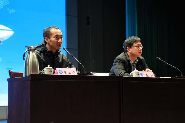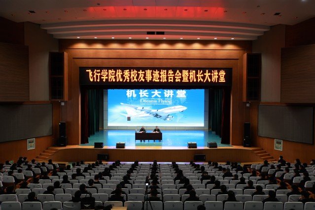 226612月17日上午,太阳成集团tyc151cc在学苑第一报告厅举办“优秀校友事迹报告会暨机长大讲堂”,会议邀请2006级首届飞行员、山东航空公司机长教员王仁冲主讲,太阳成集团tyc151cc党总支副书记李帅主持会议,2019级飞行技术专业全体学生参加。