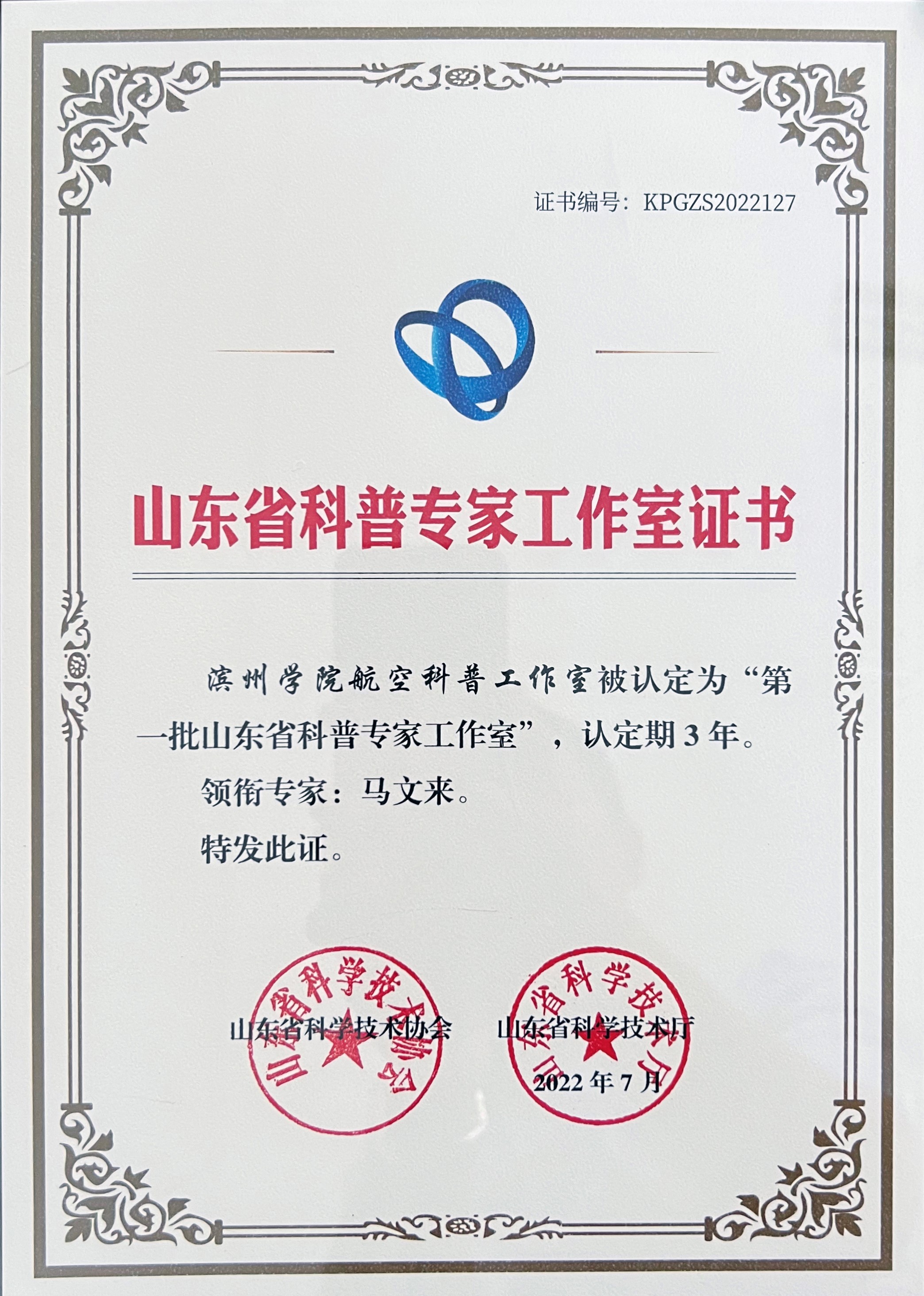 据悉,山东省科普专家工作室认定工作是省科协、省科技厅贯彻落实《山东省全民科学素质行动规划纲要实施方案(2021—2025年)》,推动科技资源科普化的一项重点工作。滨州学院航空科普工作室始终把满足公众科普需求作为项目实施的出发点与立足点,把项目实施与省科协重点工作紧密结合,统筹谋划,协同推进,突出特色,注重实际,切实发挥科普项目辐射带动作用,推动航空科普服务能力和水平提升。