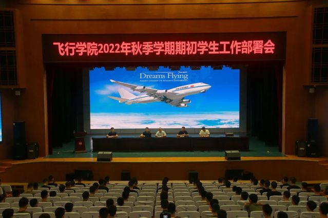 1908月21日晚,太阳成集团tyc151cc在学苑会堂召开2022年秋季学期“开学第一课”暨期初学生工作部署会。学院党总支副书记及全体辅导员、班主任,全体在校飞行技术专业学生参加会议。会议由学院学生科长主持。