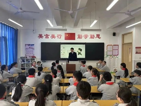 史纪龙作为志愿者,坚持学雷锋、做好事,热心参与青少年思政教育活动。从小时候到如今成为一名大学生志愿者,他始终以雷锋为榜样,努力做到“把有限的生命,投入到无限的为人民服务之中去”。他走进5年级4班,向同学们讲述了雷锋的故事和学雷锋的感悟与收获。他表示,学习雷锋精神要从身边的点滴小事做起,不怕困难,助人为乐,积极参与新时代文明实践志愿服务,当好雷锋精神的传人。