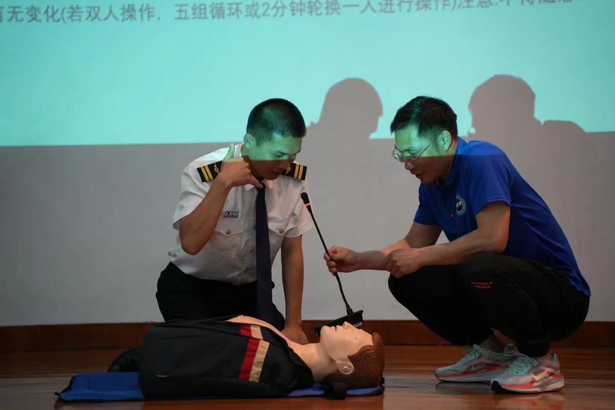 沃栋梁通过讲述近年来发生的一件件痛心溺水事例,分析发生在青少年中的一组组沉痛伤亡数据,教育同学们要增强对防溺水的重视,远离不明水域和安全隐患,不到无安全设施、无救援人员、不熟悉的水域游泳,不擅自下水施救。同时围绕“游泳注意事项”、“同伴落水,怎么救人不慎落水,如何自救”等方面,现场讲解演示了基本的防溺水技巧,并通过现场教学的方式,指导部分同学使用教具模拟学习心肺复苏、人工呼吸等急救流程,提高学生的自救和施救能力