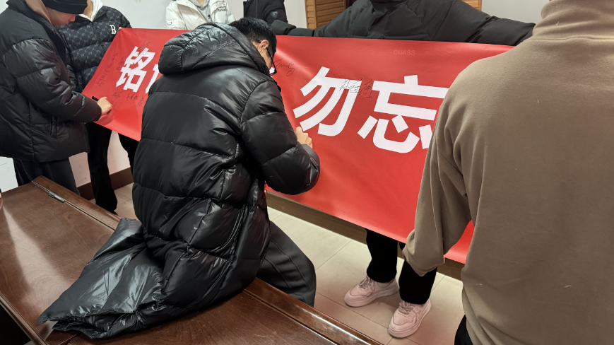 最后,同学们在“铭记历史,勿忘国耻,珍爱和平,砥砺前行”横幅上签字,签名墙上一个个名字汇聚成一股强大的力量,共同传递着铭记历史、祈愿和平的坚定信念,让同学们在参与中深刻感受到历史的厚重和和平的珍贵,进一步激发他们的爱国情怀和责任感。