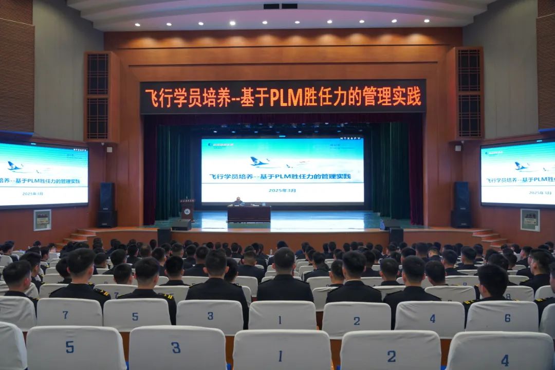 他指出,"在航校阶段,除了飞行技能,更要注重培养良好的飞行作风和职业素养。"报告重点指出山航在技术胜任力管理中的特色创新,包括高度表练习测试小程序、CDU练习小程序、自主研发SCT等应用程序。他强调,"山航在选拔飞行员时,不仅看重飞行技术,更注重候选人的综合素质和发展潜力。”最后表达了对全体学员的期许,“对公司常怀感恩之心,对飞行秉持敬畏之心,对安全严守底线之心,对成长保持进取之心!”
