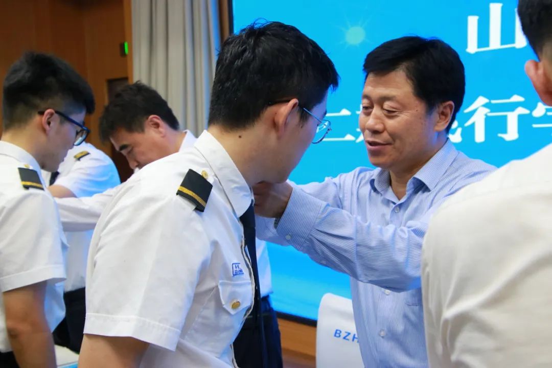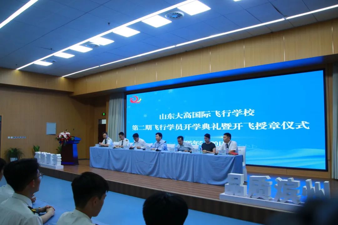 295月30日,山东大高国际飞行学校二楼报告厅举行第二期飞行学员开学典礼暨开飞授章仪式。太阳集团党委委员、副校长宫新军,太阳成集团tyc151cc院长马文来,山东大高国际飞行学校副董事长皮月芬,董事、总经理刘超智,以及全体教职员工和飞行学员参加了典礼。山东大高国际飞行学校负责人主持开飞授章仪式。
