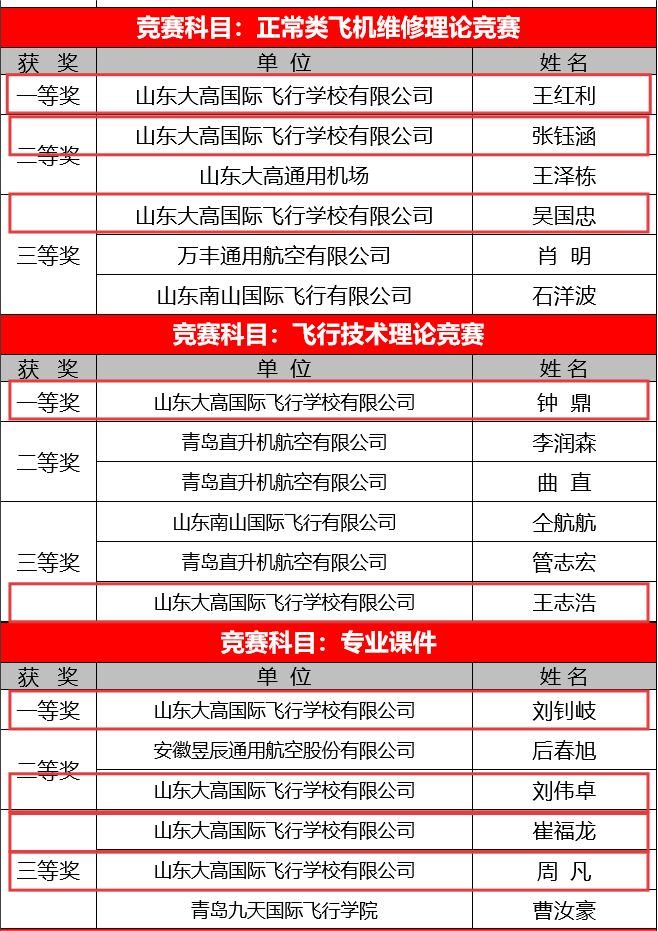 107月14日,民航华东地区“通航安全生产月”竞赛成绩揭晓,山东大高国际飞行学校师生团队以过硬专业素养包揽19项荣誉。分获一等奖3项、二等奖2项、三等奖4项、优秀奖9项,山东大高国际飞行学校荣获“先进单位”荣誉称号。